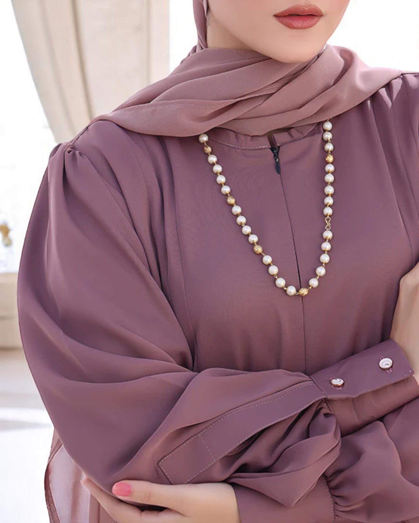 Coordinated Look: Comes with a matching hijab for a complete and polished ensemble.